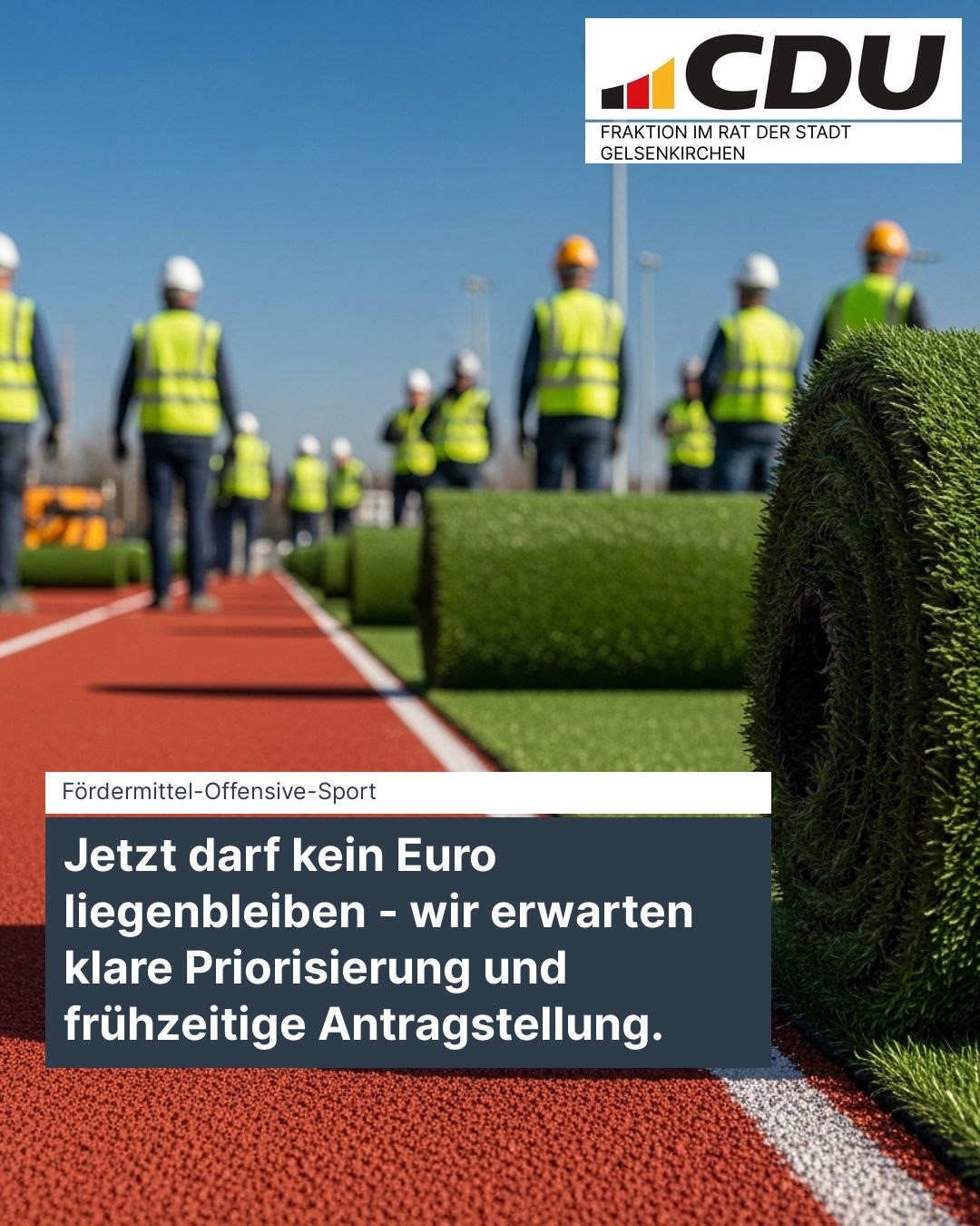 Für die CDU steht fest: „Sport ist ein Standortfaktor für Gelsenkirchen. Wenn Bund und Land Mittel bereitstellen, müssen wir bereit sein – schnell, professionell und strategisch.“